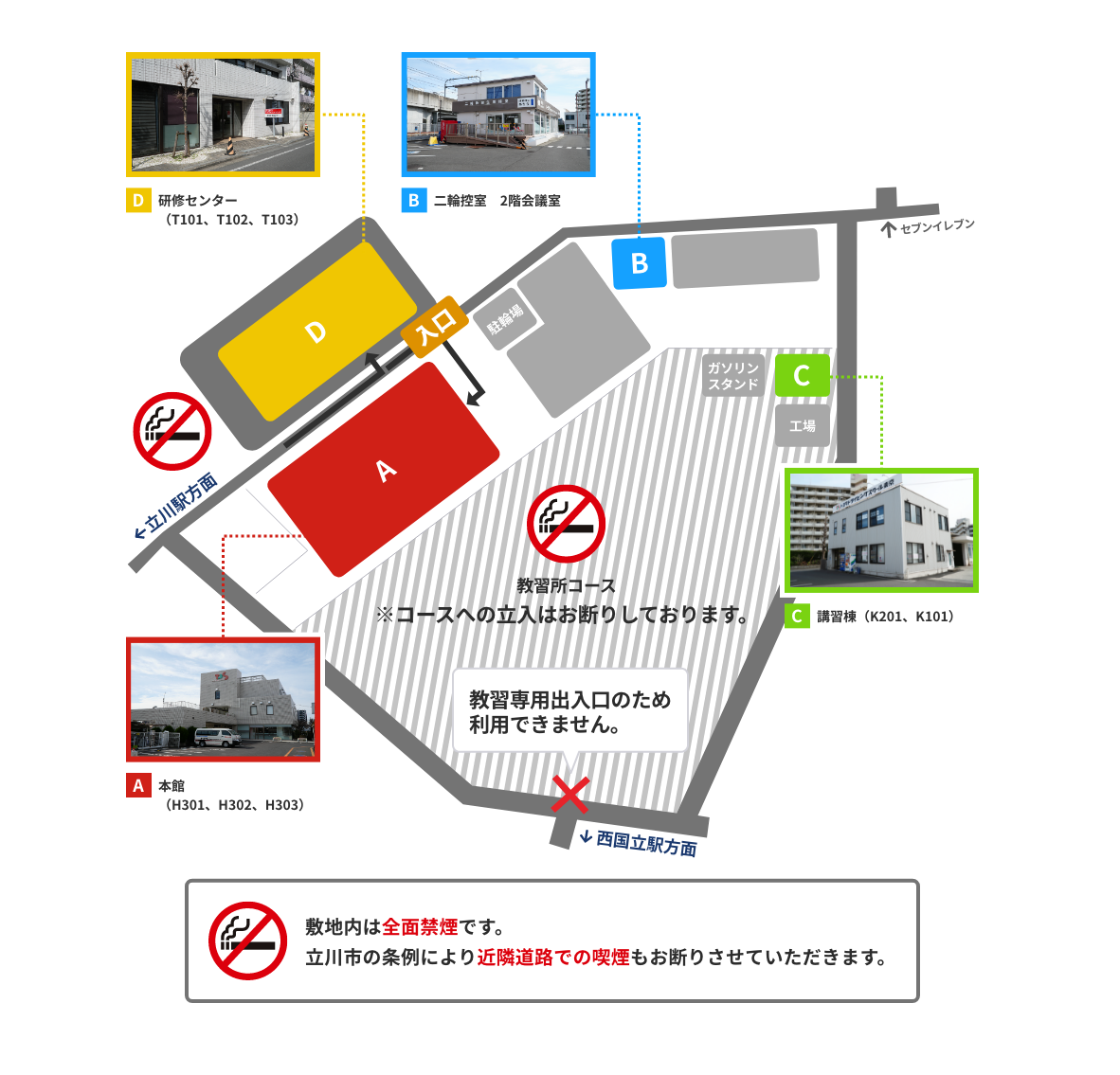 ※教習所コース内は立ち入り禁止です。南門より入らないようにご注意ください。